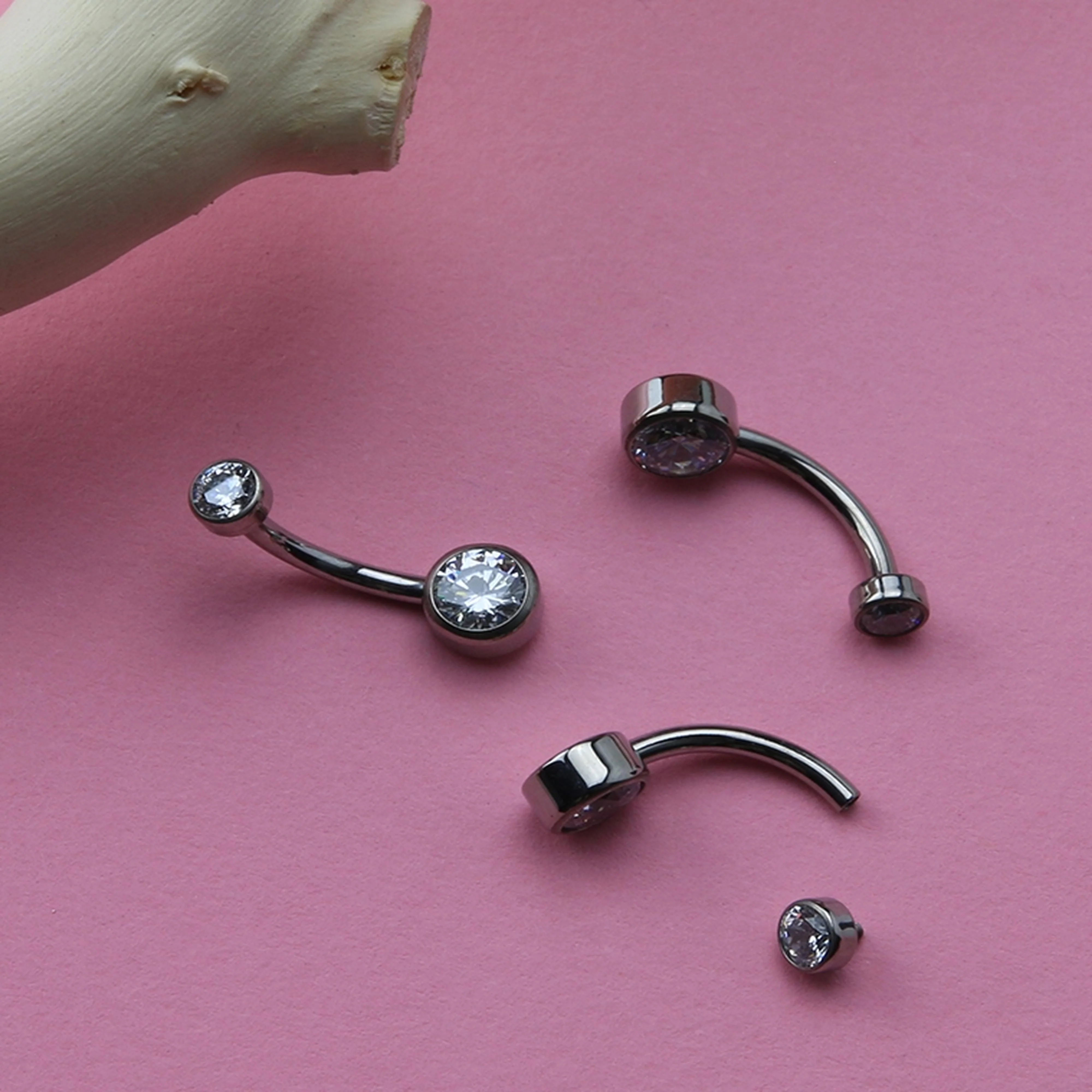 Clear Double Flat Bezel CZ Titanium Belly Button Ring